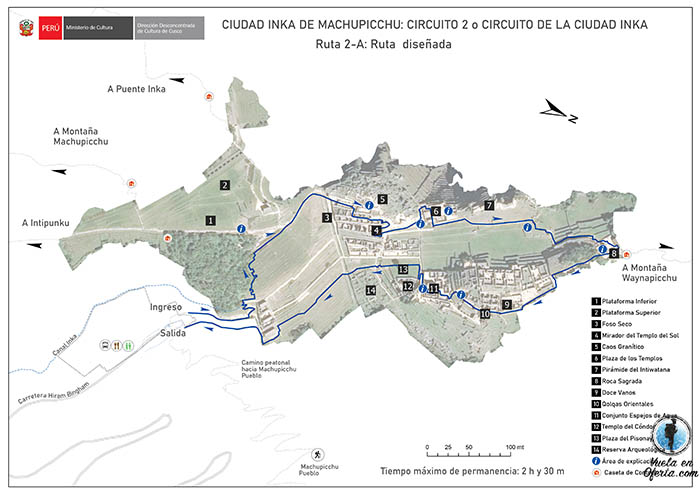 El Circuito 2 es el que podríamos decir obligatorio si es la primera vez que se visita Machu Picchu, y el más completo.
