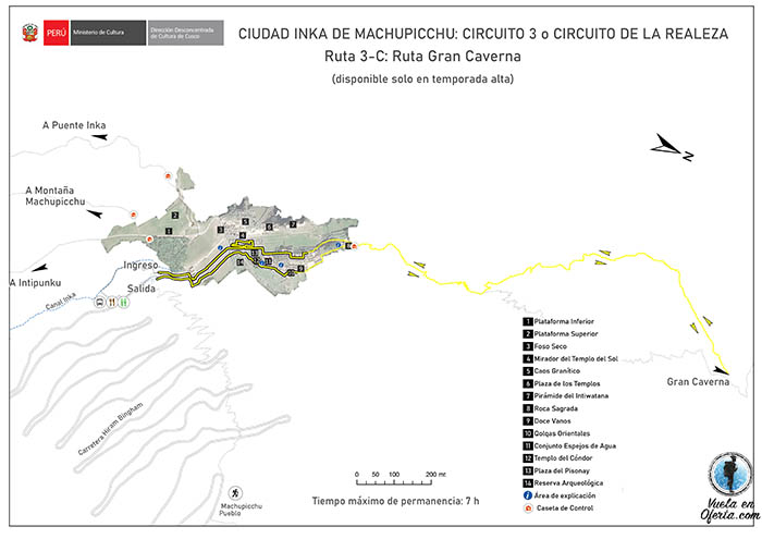 Este itinerario únicamente está disponible en temporada alta, y la caminata hacia la Gran Caverna demora aproximadamente 1 hora 30 minutos (algo más para la vuelta), más el tiempo que pases en el interior del recinto arqueológico.