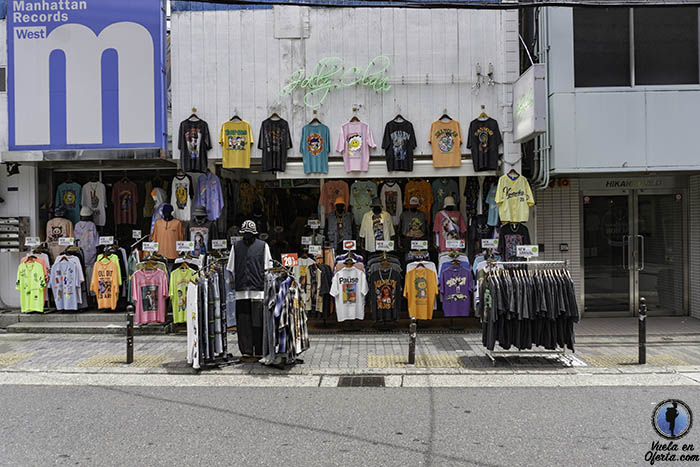 Las calles están abarrotadas de tiendas de ropa con camisetas, sudaderas, gorras…